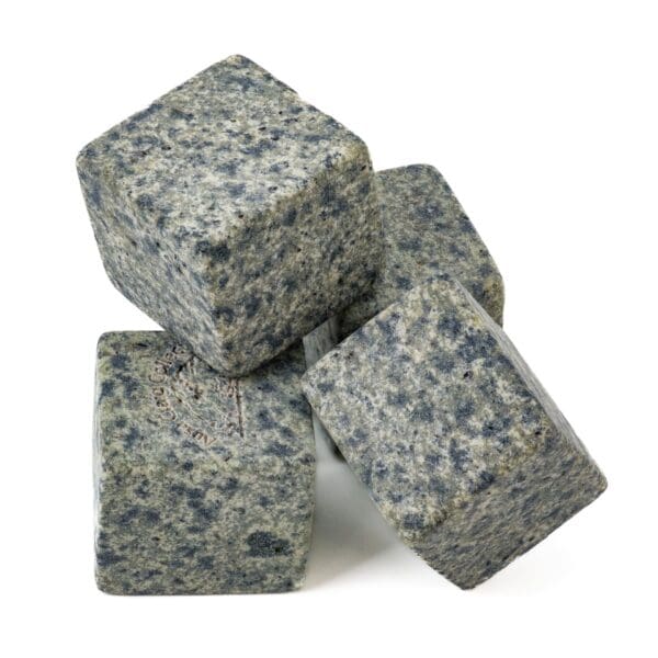 Set of 4 Whisky Stones to keep your dram chilled without any dilution. Hand crafted from Ailsa Craig Common Green Granite and presented in a cloth gift bag.